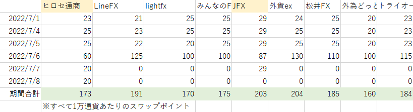 スワップポイントって金利差から生まれる金利(厳密に言うと違う?)だけど、会社によって、毎日支払われるスワップポイントが違うのですよね。