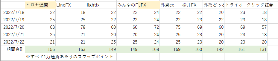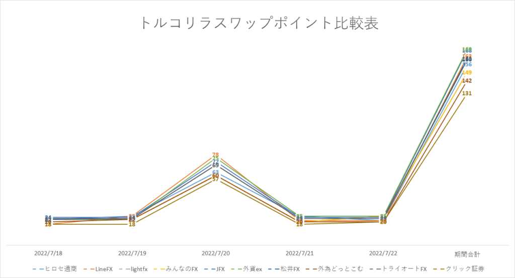 トルコリラスワップポイント比較(2022/7/18-2022/7/22)