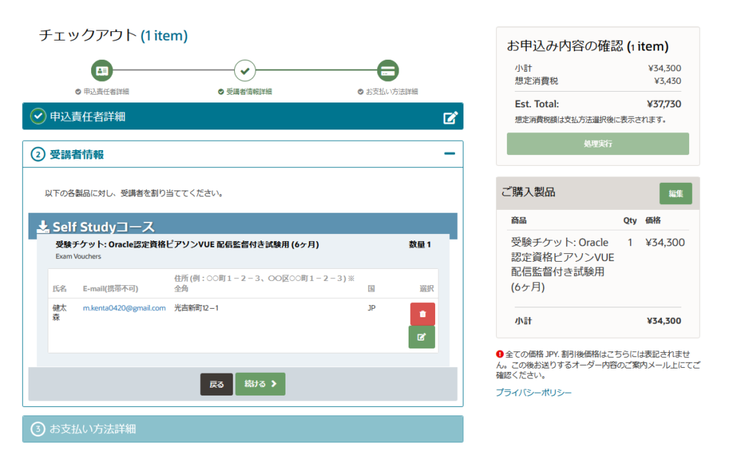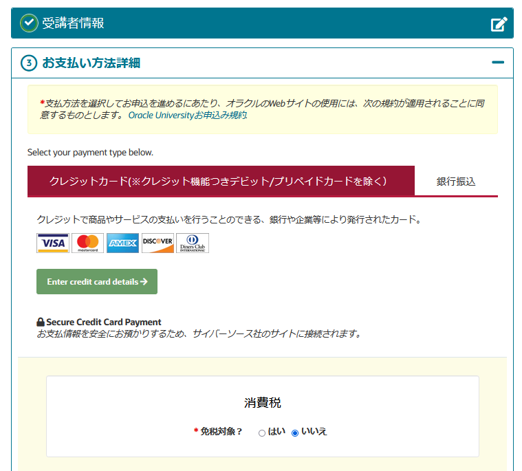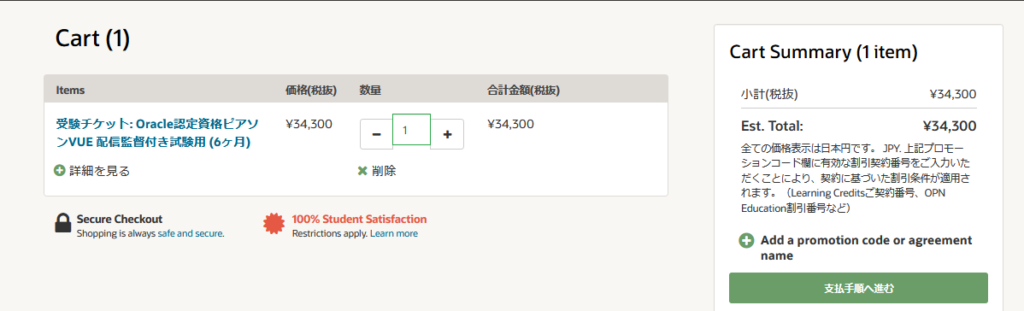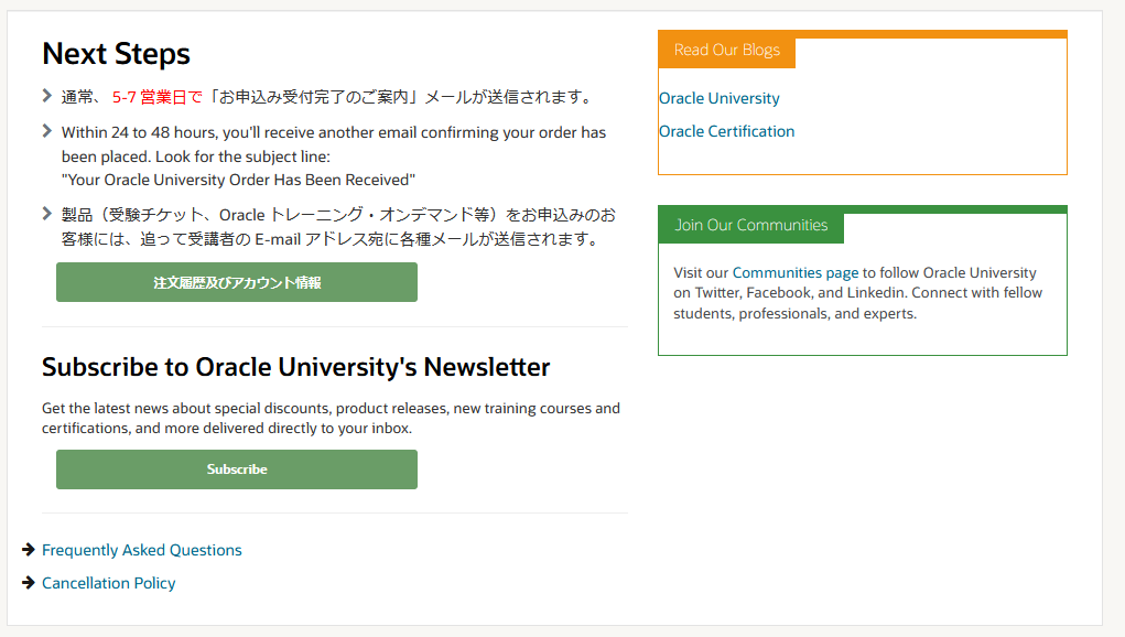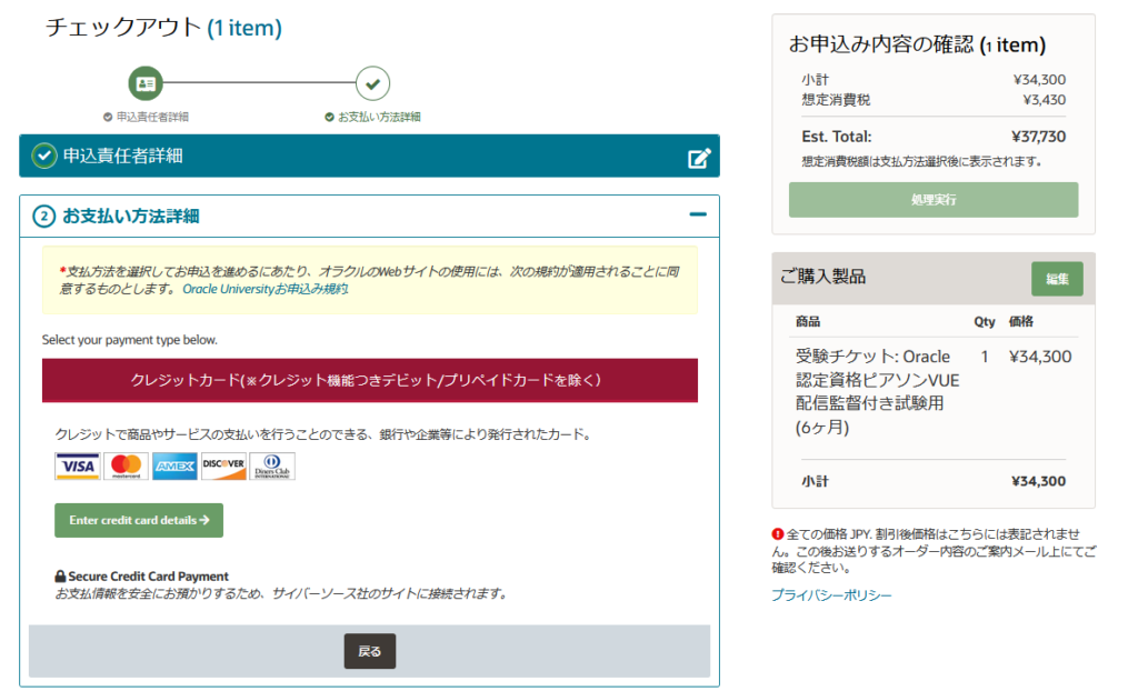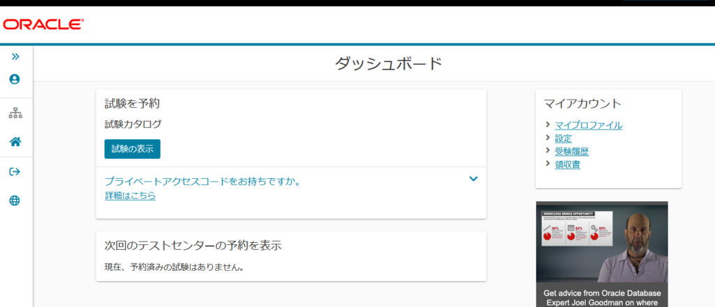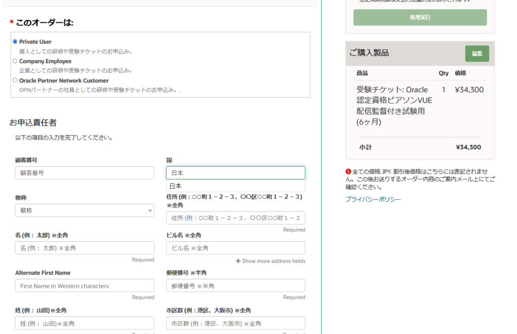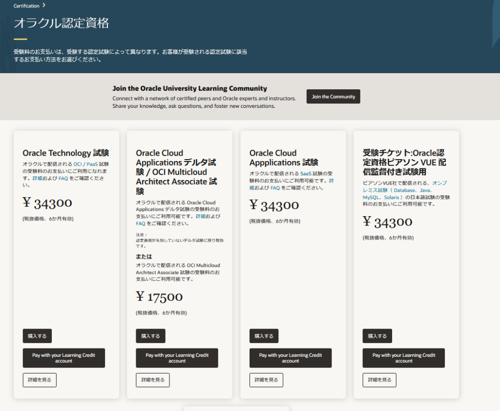 オラクルの受験チケット購入ページ