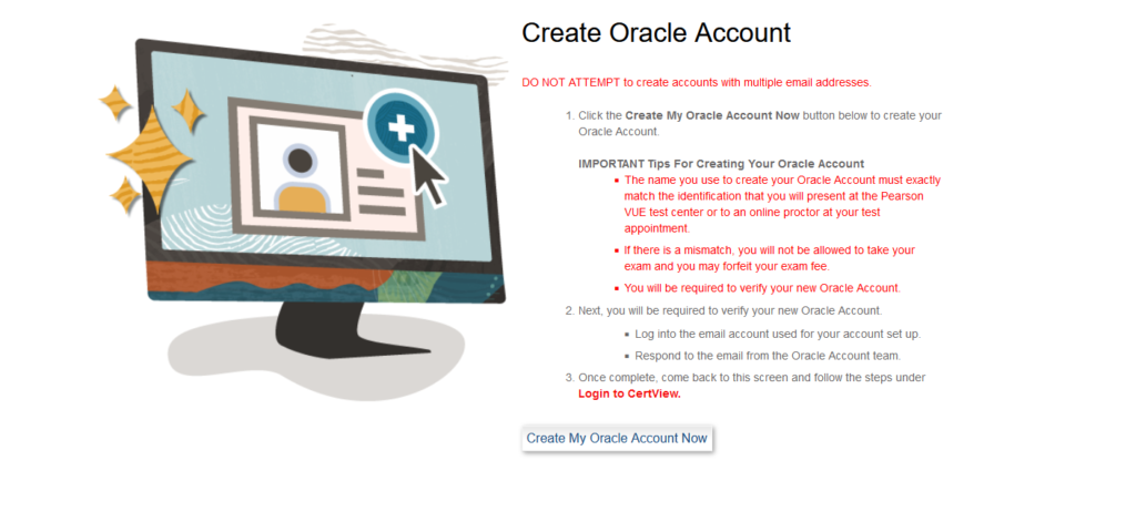 1,オラクル、2,CertView、3,ピアソンVUEが必要とのこと。