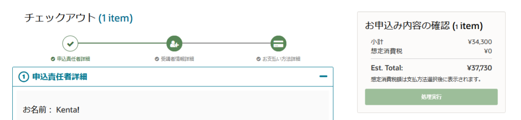 お得なコードを持っていたらAdd a promotion・・・のプラスをクリックすればいいけど、持ってないので、スルー、、、かなしい。