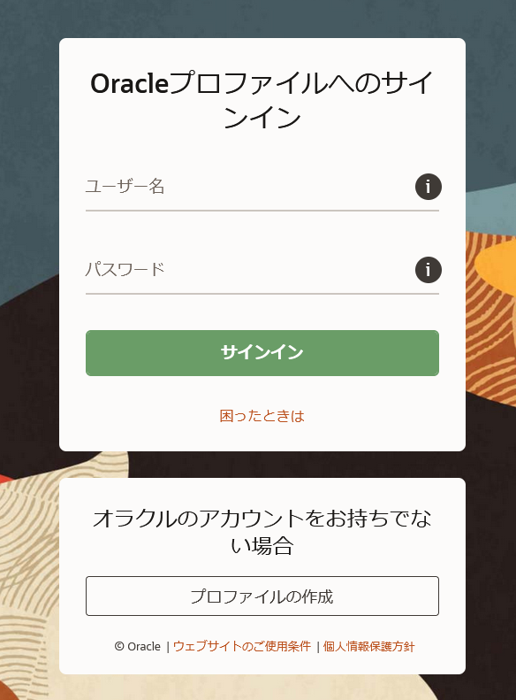 Create Oracle Account」をクリック