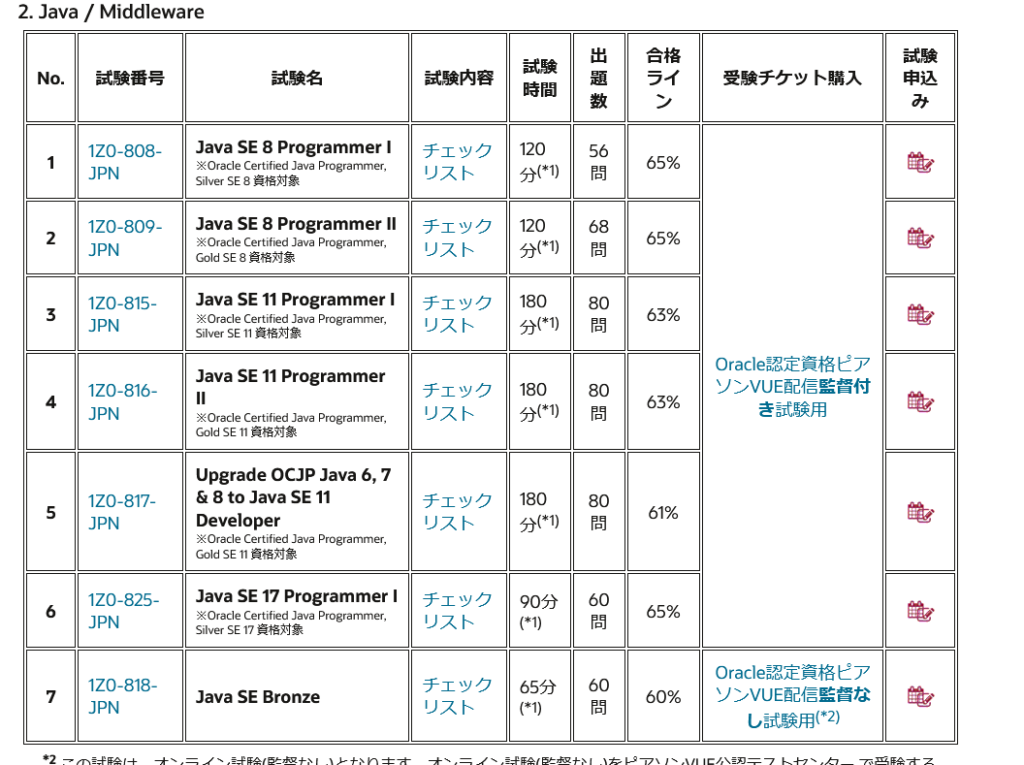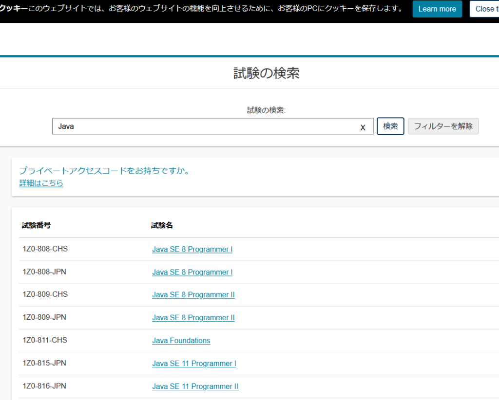 Java SE 11 Programmer Ⅰ wをクリック
