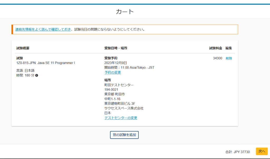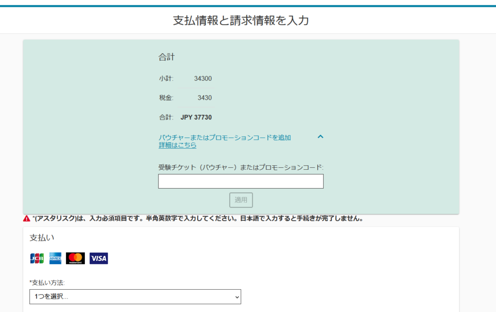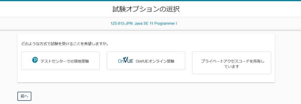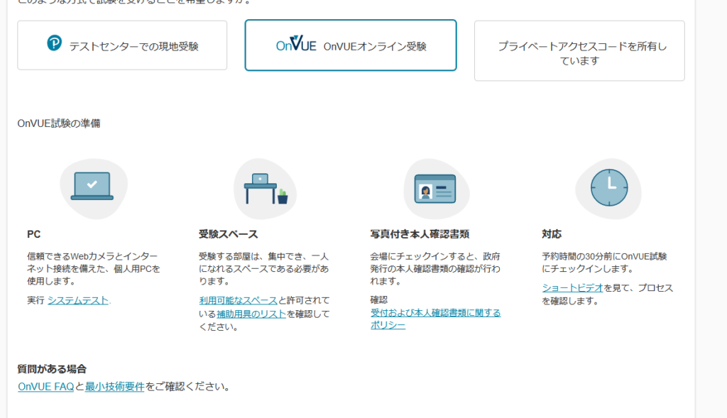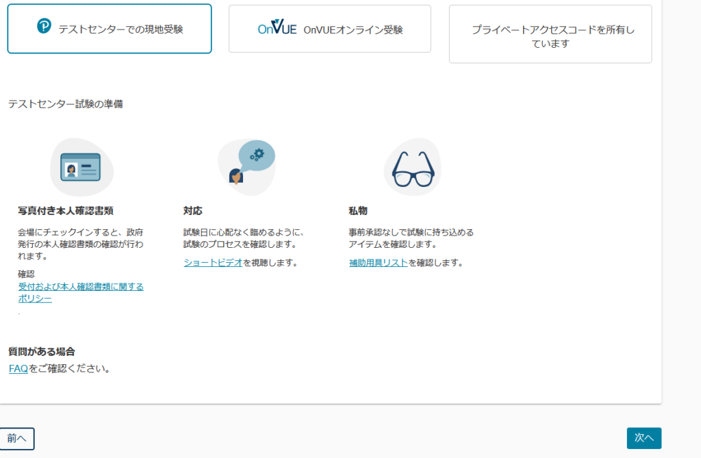現地で受けたいのでテストセンターを選択