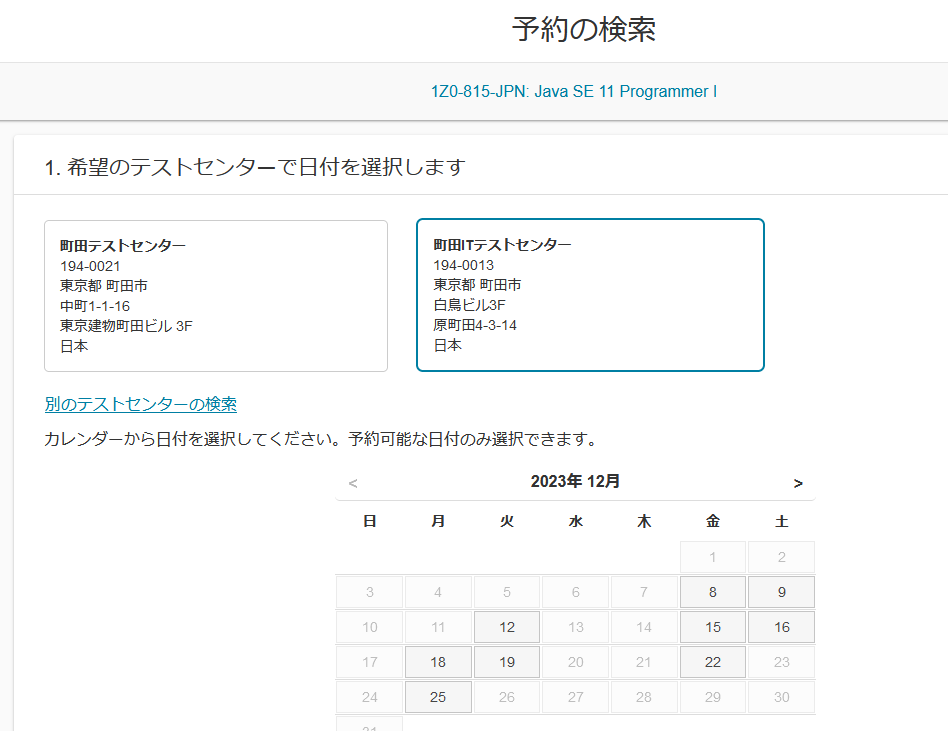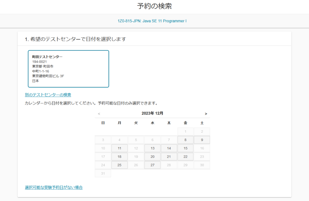 日にちを選択。日曜日受験したかったがやってないのか。。。。。。。。。
