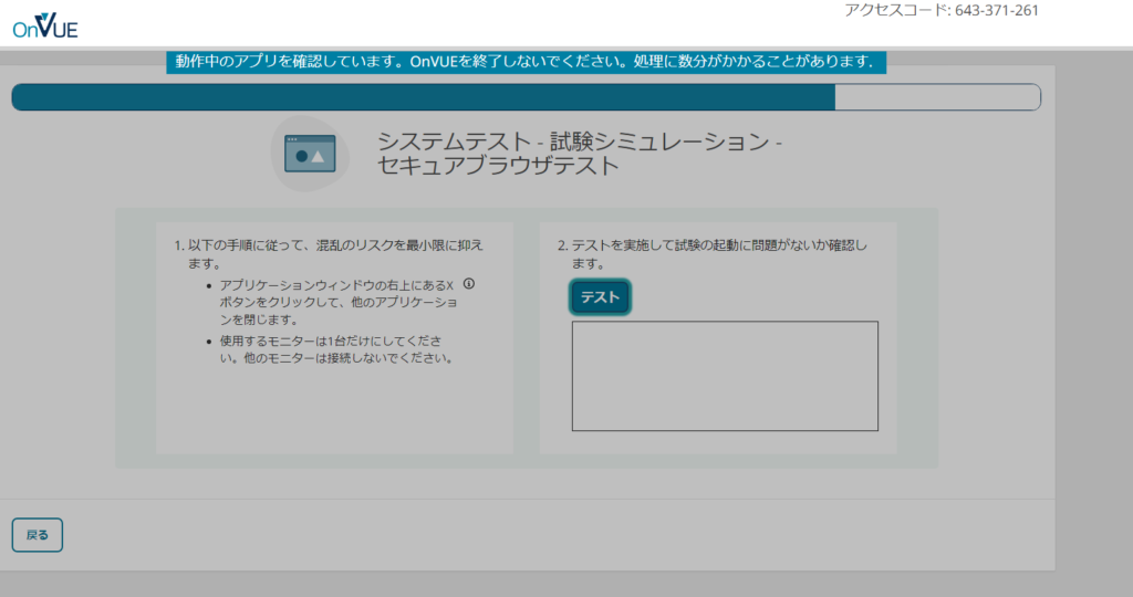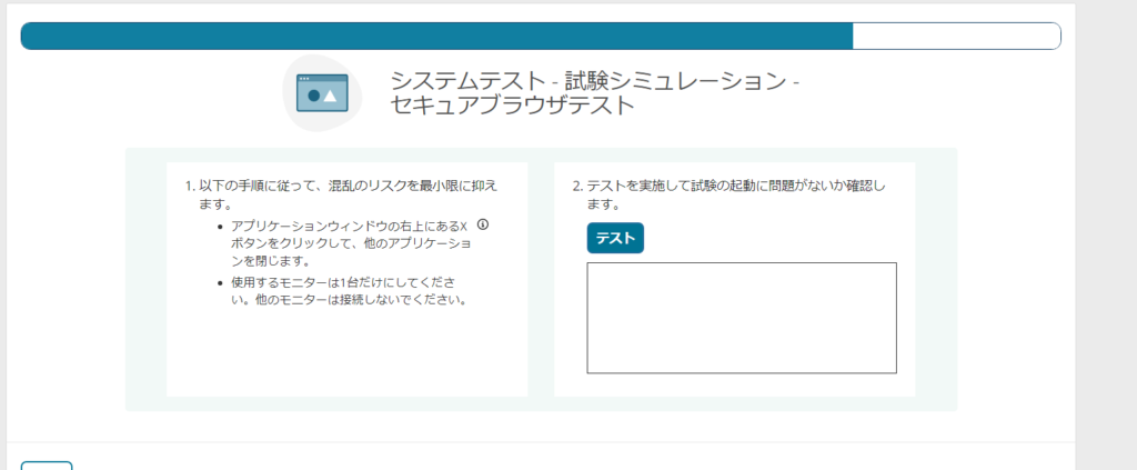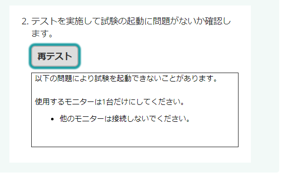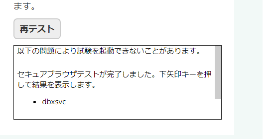 以下の問題により試験を起動できないことがあります。セキュアブラウザテストが完了しました。下矢印キーを押して結果を表示します。
