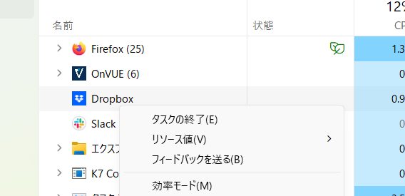 ここから色々終了させるが、ドロップボックスが残っている。